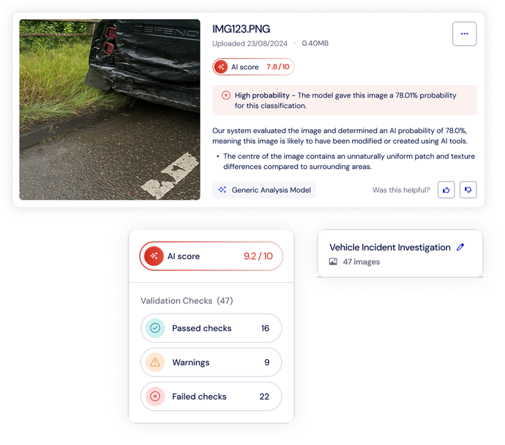 The platform returns structured authenticity outputs for review, explaining its perception on the data. A trained reviewer evaluates the case, using authenticity signals as one input among others. This model reinforces human oversight while introducing analytical depth that manual inspection alone may struggle to maintain at scale.